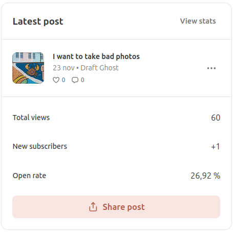 The moment either of these two things happens—my subscriber count hits zero, or a new post gets zero views in the entire week after it goes live (I think that’s a fair window)—everything stops instantly. I will never log back into Substack to check anything, no more posts, the book series freeze exactly where they are, no more prints available. No goodbyes, no explanations, nothing.