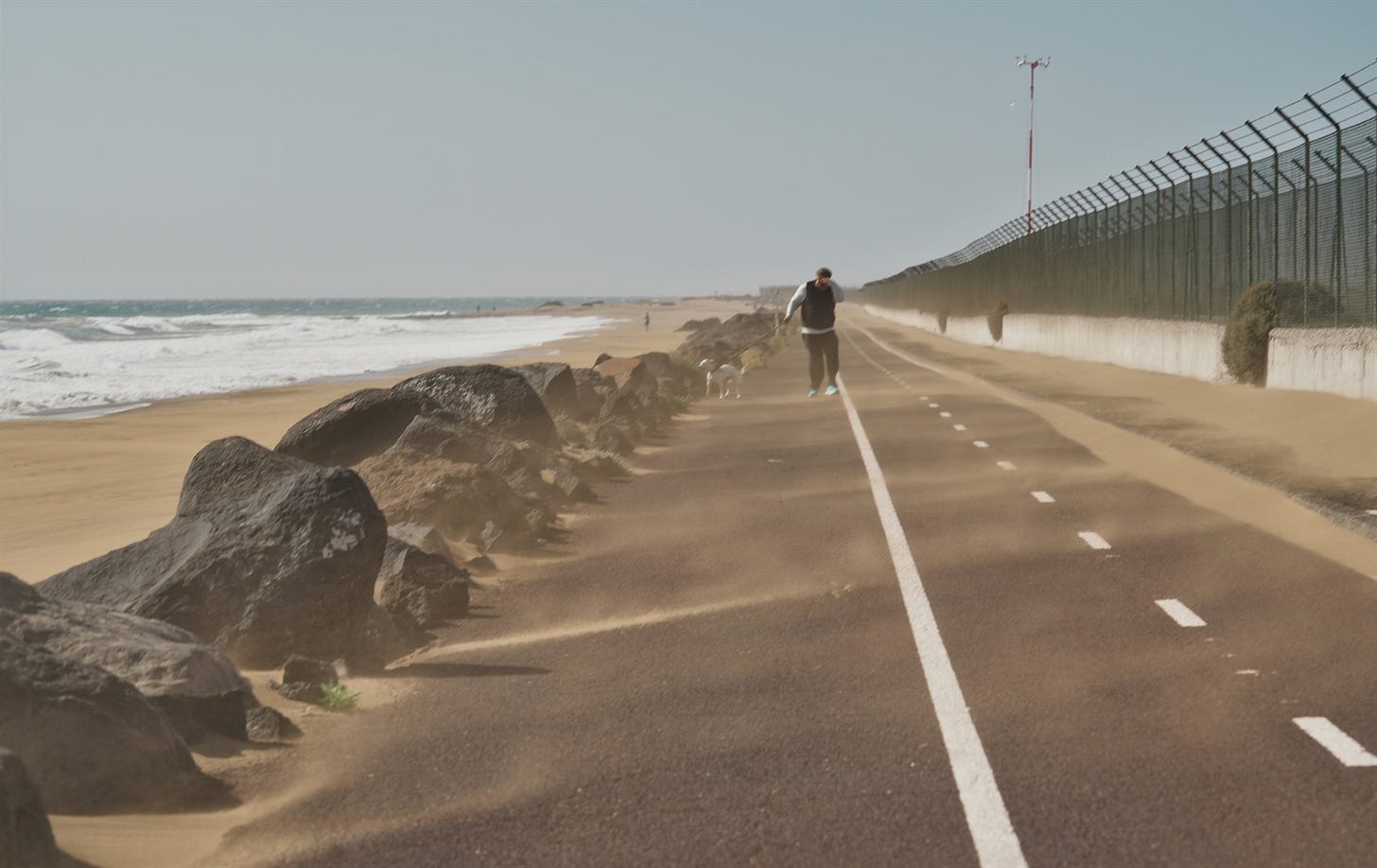 As you’ve probably noticed from recent posts, I always take the same walking route. It’s a long path that takes me about three and a half hours round trip. It has two distinct parts: first a stretch that runs along the sea, with the airport on one side and the beach on the other, and then it turns into a street that still follows the coastline but now runs through the tourist urban area.